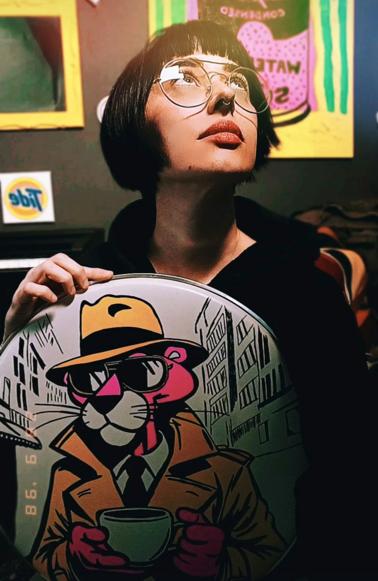 Εξασκήθηκε στις πριγκιπικές τέχνες από μικρή. Ωδεία, πιάνα, θεωρίες... ένας δρόμος που οδήγησε αυτό το ανήσυχο πνεύμα σε σύγκρουση με τον συμπαγή τοίχο της Γραφιστικής τέχνης, καθώς εκτός από τον κόσμο του ήχου, ήθελε να κατακτήσει και τον κόσμο της εικόνας. Σπουδές, πολλές ώρες μπροστά στον υπολογιστή και πολλές συνεργασίες της έδωσαν την πολύτιμη εμπειρία έτσι ώστε να ξαναλλάξει μορφή στις δύο μεγάλες της αγάπες. Παράτησε λοιπόν τα πιάνα με τις λεπτοφυείς συχνότητες και τις μετέτρεψε σε χαμηλές βαρύγδουπες νότες με εργαλείο το ηλεκτρικό μπάσο. Γιατί βράζει και το rock n' roll μέσα της. Όπως όμως όλοι γνωρίζουμε το ροκ είναι δρόμος αντισυμβατικός. Δεν μπορεί να σε αφήσει καθηλωμένο στο γραφείο του υπολογιστή. Έτσι λοιπόν η γραφιστική μετασχηματίστηκε σε ελεύθερη ζωγραφική. Προς θεού! Όχι σε χαρτί! Ο καμβάς της είναι όλα τα αγαπημένα αντικείμενα, τα φετίχ των ανθρώπων, στα οποία μέσα από το χρώμα, αποκτούν μια εντελώς νέα και μοναδική υπόσταση. Παπούτσια, τσάντες, σκαμπό, κιθάρες, μπάσα, τρίφτες, λεμονοστίφτες, αυτοκίνητα, μηχανάκια, ποδήλατα και χίλια μύρια αντικείμενα βρίσκουν ξανά έναν πολύ σοβαρό λόγο να υπάρχουν στον μάταιο τούτο κόσμο!!